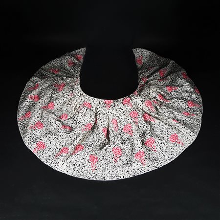 Lot 2 Balenciaga gonna a balze in tessuto misto seta a fondo avorio con pois neri e rose; elastico nero in vita, tg. 38 (marca presente solo nell'etichetta della composizione)