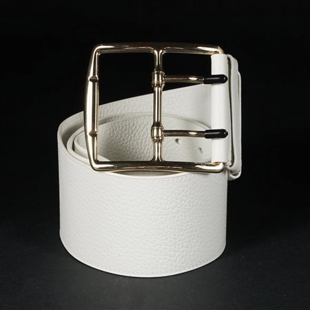 Lot 3 Hermès cintura a fascia in pelle bianca con alta fibbia dorata, mis. 85