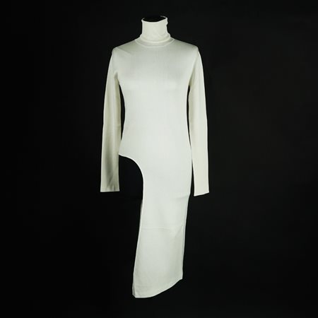 Lot 6 Balenciaga maglia lunga asimmetrica in seta bianca a collo alto, tg. F 36 (nuova con cartellino).