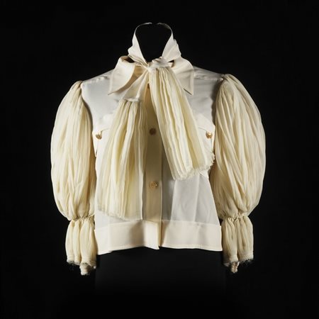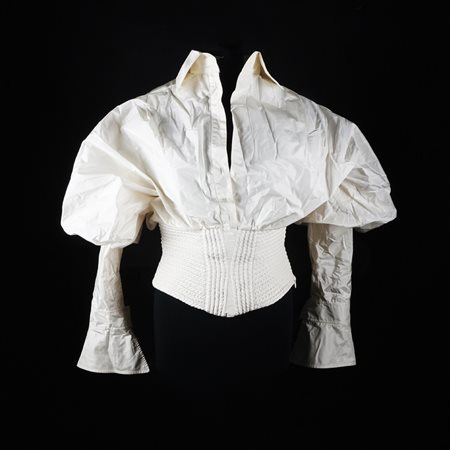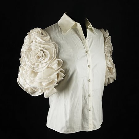 Lot 14 Gianfranco Ferré camicia di taffetà bianco con ampie maniche a palloncino, tg. 40 (bottoni mancanti)