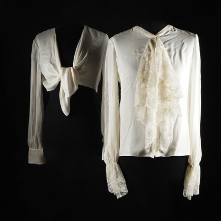 Lot 13 Valentino camicia in seta e pizzo avorio, tg. 8 UNITA a camicia di seta annodata sul davanti (la camicia nuova con cartellino)