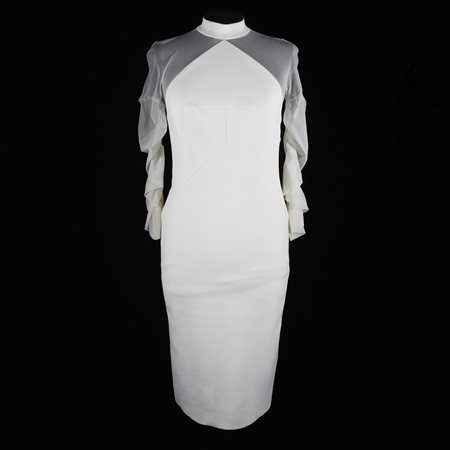 Lot 15 Balenciaga abito in tessuto bianco e tulle con collo alla coreana (qualche macchia)