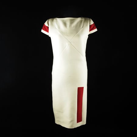 Lot 22 Jean Paul Gaultier abito a maniche corte in lana e seta color avorio e rosso, tg. 42