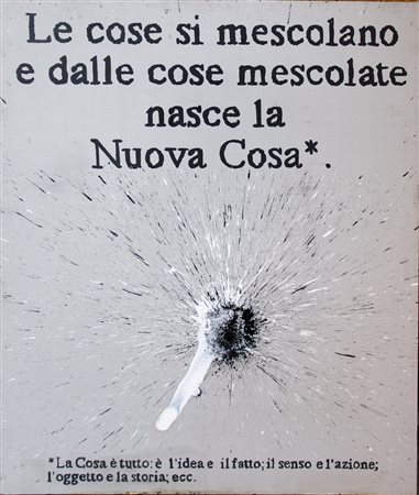 Lot 19 CARREGA, Ugo, Le cose si mescolano e dalle cose mescolate nasce la Nuova Cosa, 1988, tecnica mista su tela applicata su tavola, cm. 111x91