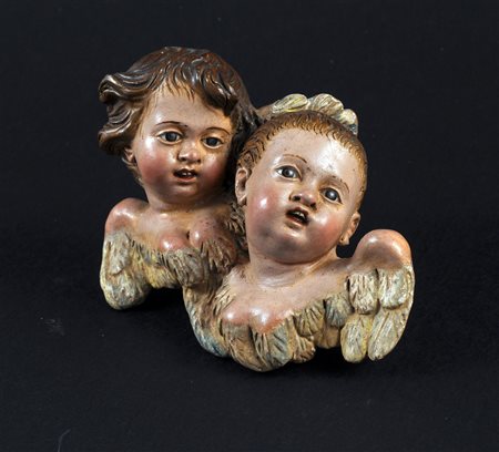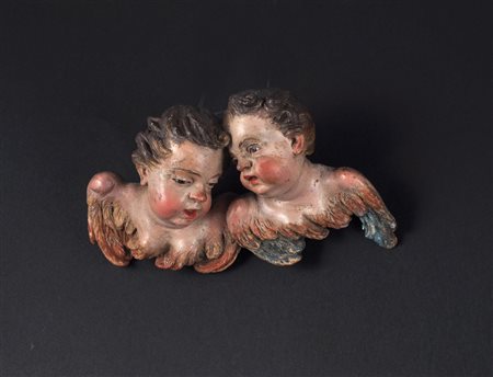 Lot 1 Coppia di cherubini in terracotta policroma h. cm 10x12,5 Napoli XVIII-XIX secolo Bibliografia: G. Noce Benigni Olivieri, Il Presepe Napoletano del Settecento e la Pittura -la natura morta, De Luca ed. d'Arte, Roma 2013 pag. 18