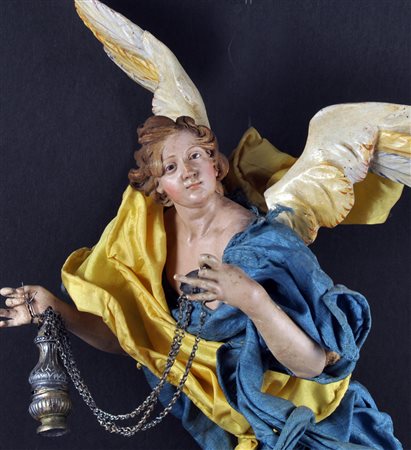 Lot 17 Angelo con svolazzo giallo e incensiere h. cm 30 Napoli XVIII-XIX secolo