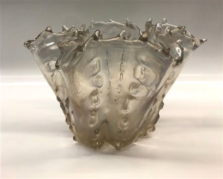 Lot 0005 Venini Murano ciotola in vetro sommerso a bollicine , Carlo Scarpa per Venini 1936c. numero 3691 catalogo blu Venini firma ad acido