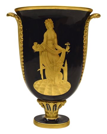 Lot 0011 Gio Ponti 1891-1979 vaso piumato in porcellana blu, decorato in oro a punta d'agata, sotto la base in verde Richard Ginori, in oro Richard Ginori pittoria di doccia