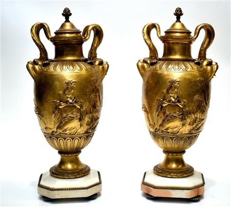 Lot 0019 F.Barbedienne coppia di vasi in bronzo dorato