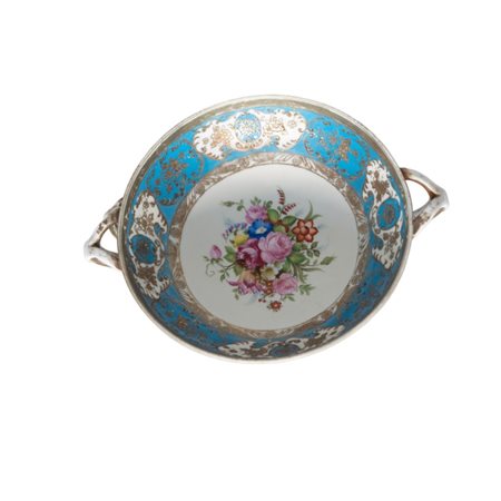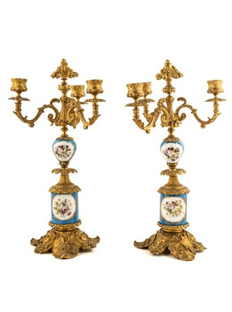 in bronzo dorato e porcellana, attribuibili alla manifattura di Sèvres, dipinti a motivi floreali in policromia