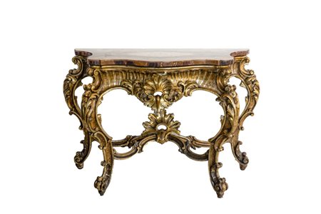 Lot 16 Console Luigi Filippo in legno riccamente intagliato e dorato