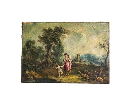 Lot 17 Attribuito ad Angelo Visoni (Bergamo 1892 - Arezzo 1956), Paesaggio pastorale in stile settecentesco