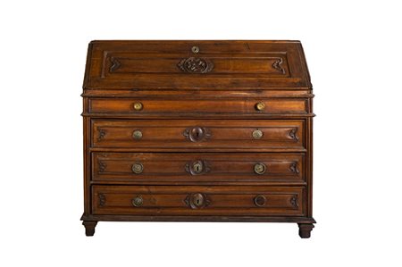 Lot 19 Cassettone a ribalta in noce intagliato a patina chiara