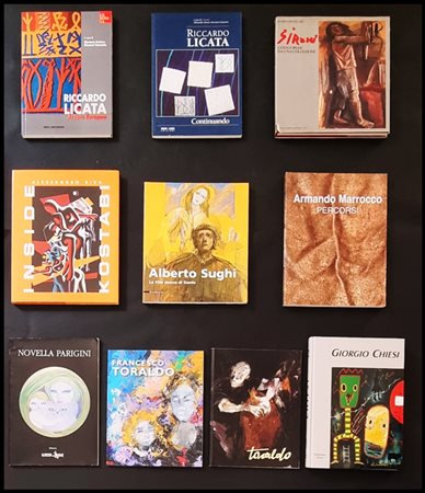 Lot 9 "Blocco" di n. 10 cataloghi così composto: Licata (n. 2), Toraldo (n. 2), Parigini, Kostabi, Sughi, Sironi, Marrocco, Chiesi.