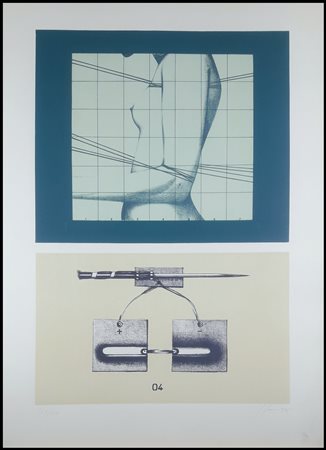 Lot 23 SARRI SERGIO Torino 1938 "Senza titolo" Serigrafia su cartoncino cm 50x70 del 1975. Firmata e datata a matita sul fronte in basso a destra, tiratura 141/150 a sinistra.
