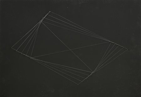 chiodi e fili su tavola dipinta, cm 40 x 60