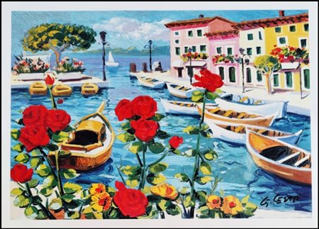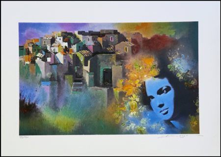 Lot 20 ROSATI GIORGIO (XX) “Positano” serigrafia materica cm 70x50. Firmata sul fronte in basso a destra, esemplare P.A. a sinistra. Sul retro etichetta di garanzia a cura dell’Istituto Grafico Italiano.