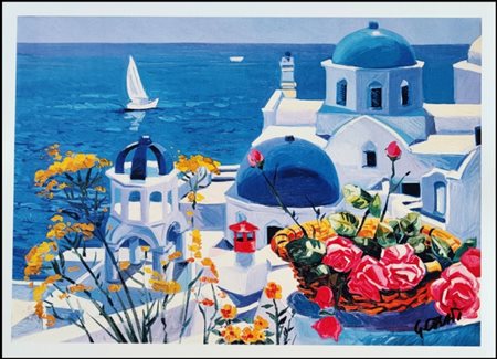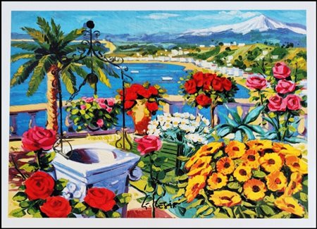 Lot 15 FARINELLI EZIO Rieti 1937 “Fiori e cupole” serigrafia su cartoncino cm 70x50. Firmata sul fronte in basso a destra, esemplare P.A. a sinistra. Sul retro etichetta di garanzia a cura dell’Istituto Grafico Italia.