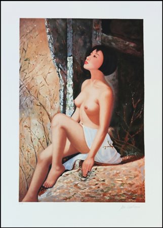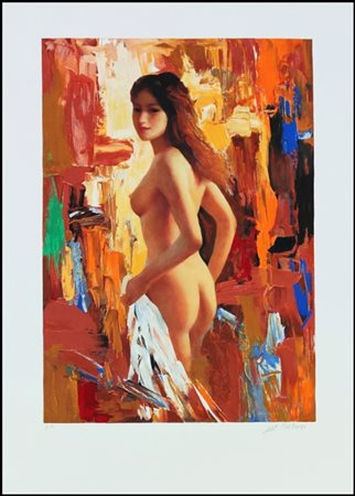 Lot 12 COSTANZI M.(XX) “Monique” serigrafia su cartoncino cm 50x70. Firmata sul fronte in basso a destra, esemplare P.A. a sinistra. Sul retro etichetta di garanzia a cura dell’Istituto Grafico Italiano.