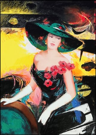 Lot 13 FARINELLI EZIO Rieti 1937 “Donna con cappello” serigrafia su cartoncino cm 50x70. Firmata sul fronte in basso a destra, esemplare P.A. a sinistra. Sul retro etichetta di garanzia a cura dell’Istituto grafico Italiano.