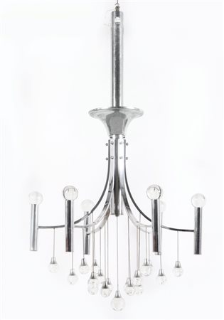 Lot 16 Lampadario in metallo cromato nello stile di Gaetano Sciolari, Italia, Anni ‘60.