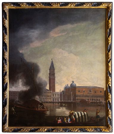 Il dipinto è stato reso noto da Egidio Martini nel celebre compendio del 1982 per l’Istituto per l’Enciclopedia del Friuli Venezia Giulia con l’anodino titolo Il molo visto dal bacino San Marco (cat. 490) in una ristretta selezione di cinque opere (486-490) del pittore tardo barocco svedese, naturalizzato veneziano dal 1717, Johan Richter, in immediata successione alla produzione del suo maestro Luca Carlevarijs (1663-1730). E difatti questa tela «unitamente ad altre vedute (…) dimostra quanto sia difficile talvolta (…) distinguere in alcuni dipinti la mano del Richter da quella del Carlevarijs» (Martini 1982, p. 490).