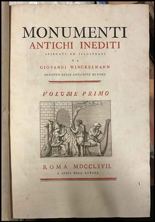 Lot 1 J.J. Winckelmann, "Monumenti antichi inediti spiegati ed illustrati da Giovanni Winckelmann prefetto delle antichità di Roma", 2 voll., Roma 1767.