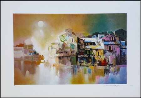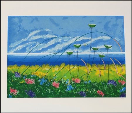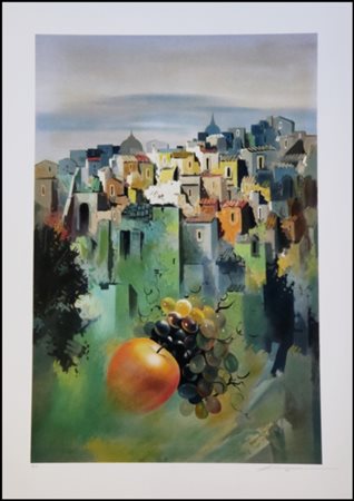 Lot 15 FARINELLI EZIO Rieti 1937 “Fiori e cupole” serigrafia su cartoncino cm 70x50. Firmata sul fronte in basso a destra, esemplare P.A. a sinistra. Sul retro etichetta di garanzia a cura dell’Istituto Grafico Italia.