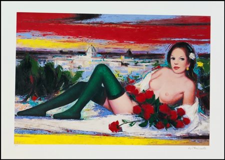 Lot 32 VULIC JOVAN Beji 1951“Terrazza romana” serigrafia su cartoncino cm 80x60. Firmata sul fronte in basso a destra, tiratura 80/99 in basso a sinistra. Sul retro etichetta di garanzia a cura dell’Istituto Grafico Italiano.