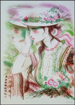 Lot 29 VULIC JOVAN Beji 1951 “Les Amantes Gitanes” litografia su cartoncino cm 60x80. Firmata sul fronte in basso a destra, tiratura 97/100 in basso a sinistra. Sul retro etichetta di garanzia a cura dell’Istituto Grafico Italiano.