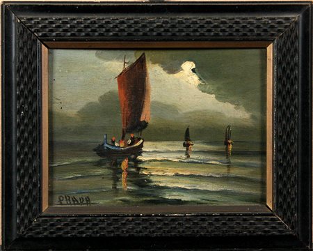 L'opera, con la barca a sinistra, presenta alcuni piccoli fori sulla tavola sul lato sinistro. -