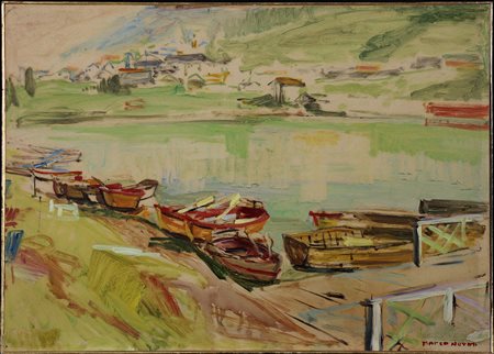 Firma dell'artista sulla barca a destra prima dell'ancora. -