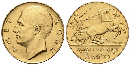 • ALBANIA. Amet Zogu (1925-1939). 100 Franga Ari 1927. Au (35mm – 2,25 g)....