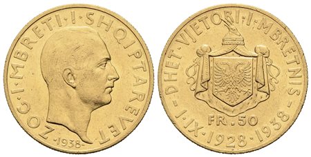 ALBANIA. Amet Zogu (1925-1939). 50 Franga Ari 1938. Au (28mm – 16,16 g). KM#25; Fr. 16. SPL. Fondi brillanti.