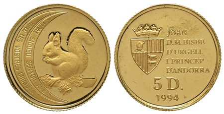 ANDORRA. Joan Martì e Alanis (1971-2003). 5 diners 1994. Au titolo 999 (1,56 g). PROOF