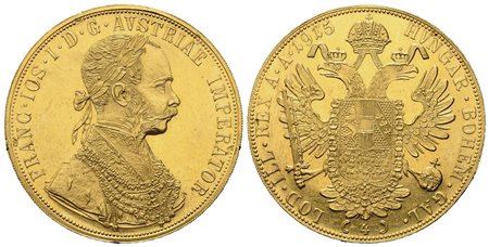 AUSTRIA. Francesco Giuseppe (1848-1816). 4 ducati 1915. Au titolo 986 (39,65 mm – 14,00 g). qFDC