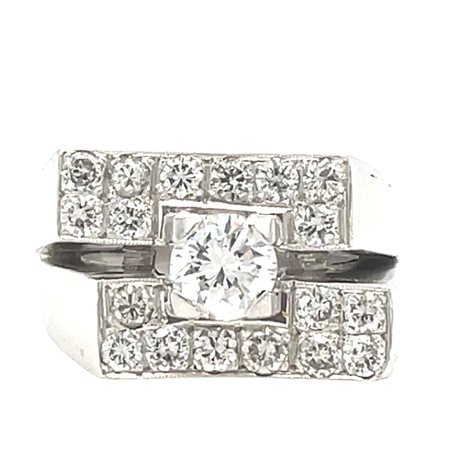 Lot 4 ANELLO IN ORO BIANCO 18K 9.75 GR CON DIAMANTE CENTRALE DA 0.62 CT COLORE D PUREZZA VS2 + 18 BRIALLANTI PER 1.00 CT TOTALI COLRE DA D A E PUREZZA DA VS1 A VS2 - CERTIFICATO AIG - MZ001