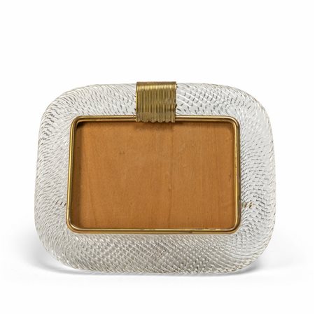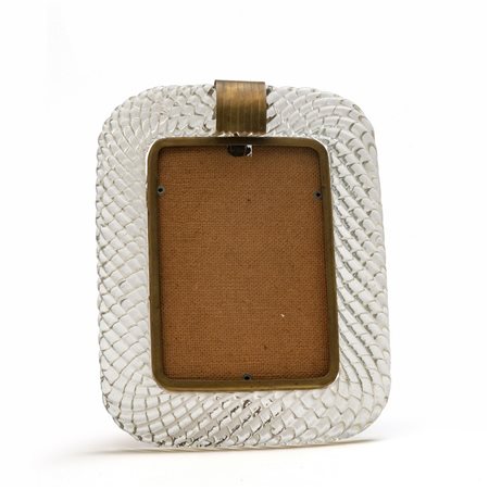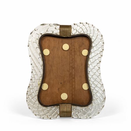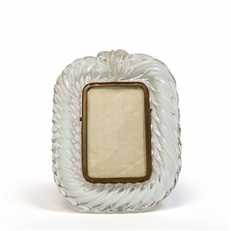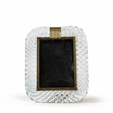 Un portaritratti in cristallo ritorto e ottone.