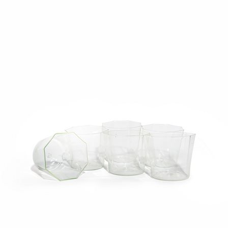 A set of six octangonal-shaped glasses in transparent glass c. 1925
