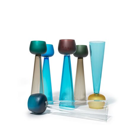 Un gruppo di sei bicchieri 'Desdy' a doppio calice.