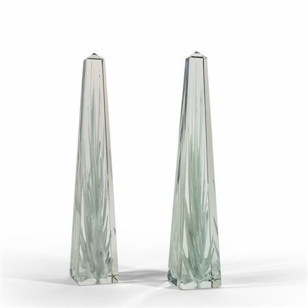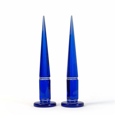 Una coppia di obelischi blu trasparente modello 4261 circa 1952.