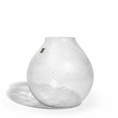 A globular vase in reticello crystal.