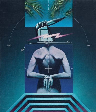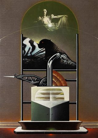 Lot 15 Sergio Sarri (Torino 1938) - Studio per stanza meccanica con avvenimento, 1983
