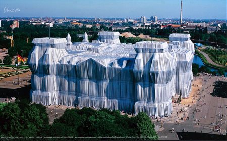 Lot 6 Christo (Gabrovo 1935 - New York 2020), “Wrapped Reichstag”, 1980-1983.Cromolitografia a colori su carta, reca al retro etichetta di Odd Art Multiples - Sydney con autore, titolo, tecnica, dimensioni ed edizione di 300 esemplari non numerati, H cm 50x80