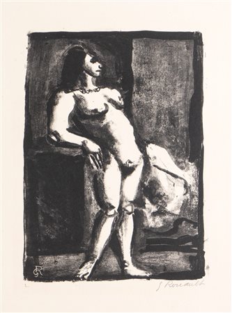 Lot 12 Georges Rouault (Parigi 1971 - 1958), “La Fille”, 1928.Litografia su carta, siglata sulla lastra in basso a sinistra “GR”, firmata in basso a destra “G. Rouault”, tiratura in basso a sinistra L, presenta timbro a secco della Libreria Prandi - Reggio Emilia e altro timbro, Lastra H cm 32.5x23