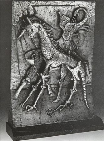 Lot 1 Salvador Dalì, Multiplo in metallo placcato in argento, 54x42x5 cm, La nascita degli animali, 1975, Es. 427/999, Certificato dell'editore.