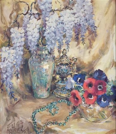Lot 4 Elica Balla, Olio su tavola, 66x57 cm, Vaso di Fiori, 1965, Firma in basso a sinistra.
