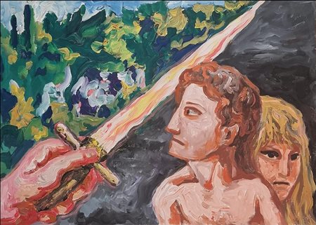 Lot 8 Carlo Levi, Olio su tela, 50x70 cm, Cacciata dal Paradiso Terrestre, 1967. Firma a fronte, firma e data a tergo.