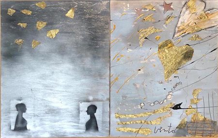 Lot 11 Giosetta Fioroni, Tecnica mista su tela, 70x100 cm (70x50cad.), Dittico di due, Autentica dell'artista su foto.