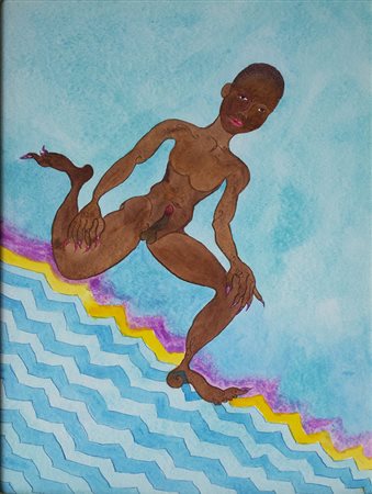 Lot 13 Luigi Ontani, Acquarello su carta, 51x35 cm, Thai SiAmor, 2006. Certificato di provenienza Ambrosiana Casa d'Aste; Provenienza - Collezione privata, Milano; Collezione Gian Ferrari, Milano; Pubblicato su L. M. "Luigi Ontani. Marmarmonia", Edizioni Charta, Sesto San Giovanni 2007, pp. sn. ill. L'opera presenta un disegno al verso.